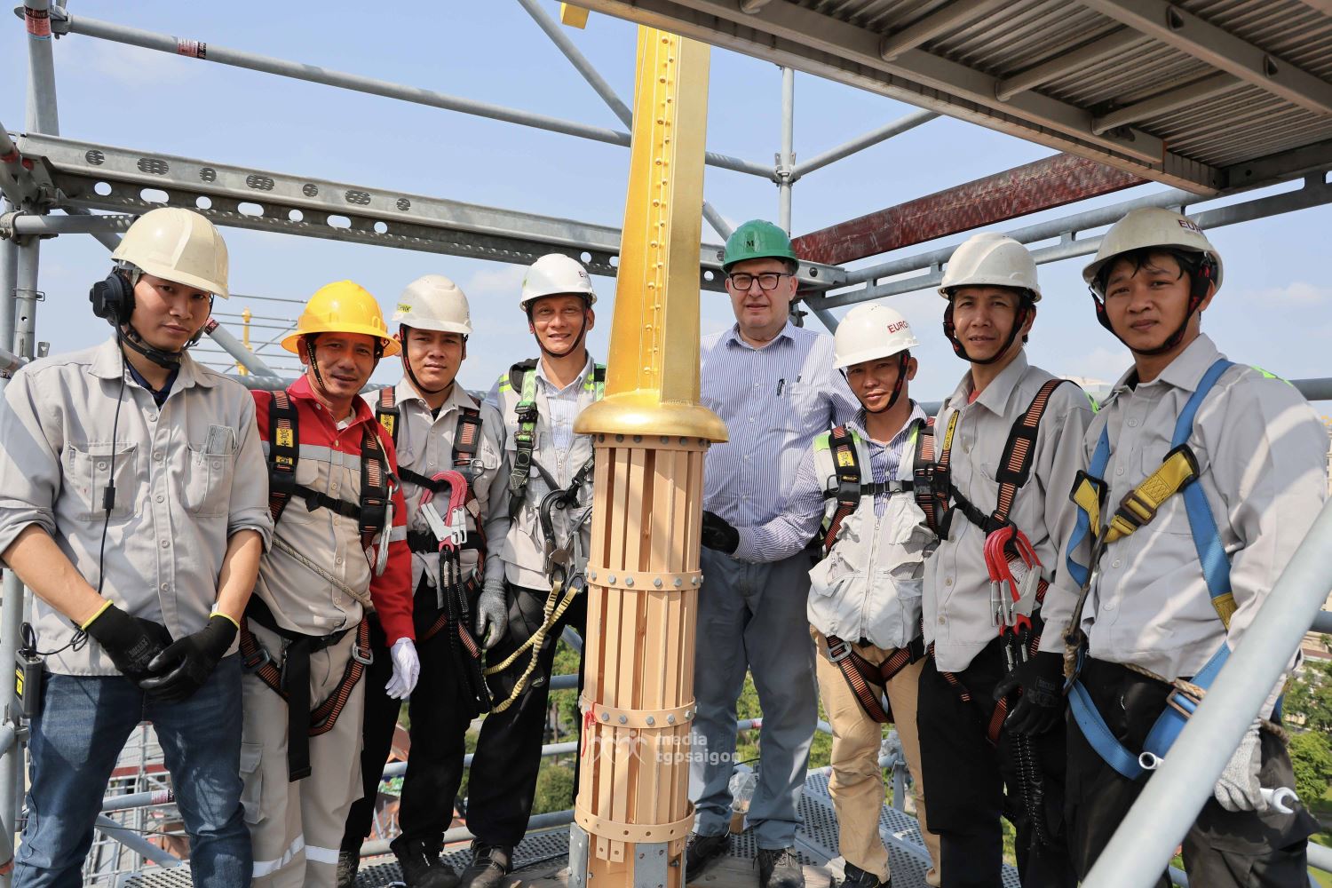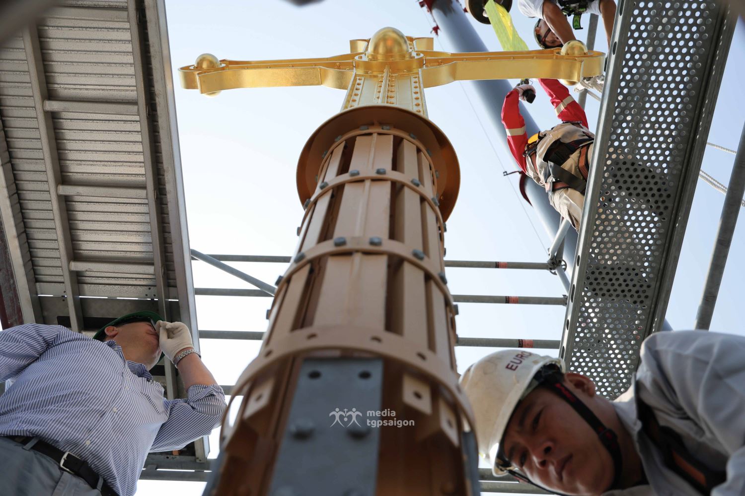 Thời khắc đặt Thánh giá trên đỉnh tháp kẽm
