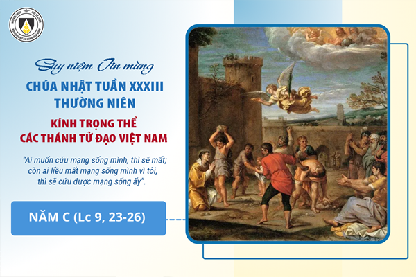 23 Khi ấy, Đức Giêsu nói với mọi người rằng: “Ai muốn theo tôi, phải từ bỏ chính mình, vác thập giá mình hằng ngày mà theo. 24 Quả vậy, ai muốn cứu mạng sống mình, thì sẽ mất; còn ai liều mất mạng sống mình vì tôi, thì sẽ cứu được mạng sống ấy. 25 Vì người nào được cả thế giới mà phải đánh mất chính mình hay là thiệt thân, thì nào có lợi gì? 26 Ai xấu hổ vì tôi và những lời của tôi, thì Con Người cũng sẽ xấu hổ vì kẻ ấy, khi Người ngự đến trong vinh quang của mình, của Chúa Cha và các thánh thiên thần”.