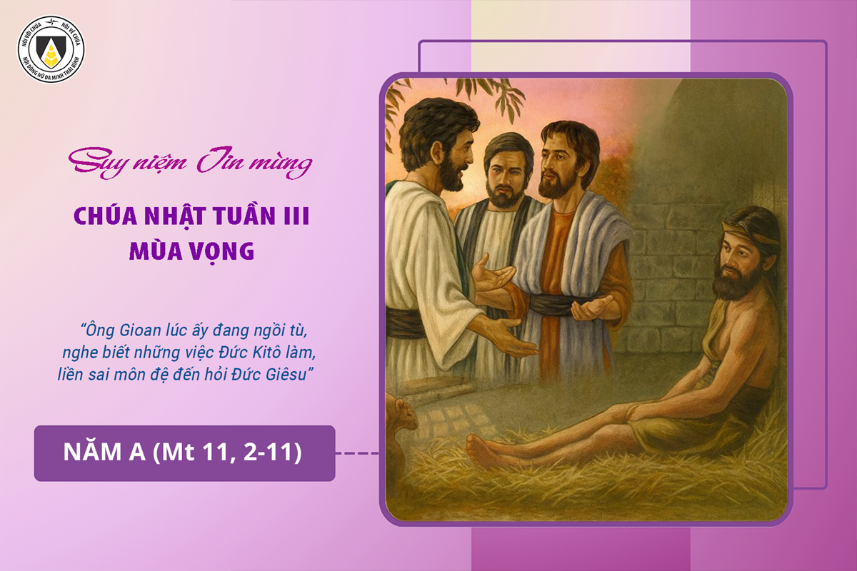 Bước vào Chúa Nhật III mùa vọng, Giáo Hội mời gọi mỗi người hãy vui mừng vì “Chúa sắp đến rồi”. Ngày Chúa đến được tiên tri Isaia tiên báo sẽ xuất hiện với các dấu chứng: mắt người mù được mở ra, tai người điếc nghe được, kẻ què nhảy nhót như nai, miệng lưỡi người câm sẽ reo hò, người được Đức Chúa giải thoát sẽ trở về giữa tiếng reo hò và rạng rỡ niềm vui… Dân Do Thái ngày ngày đợi trông Đấng Cứu Thế, và ngay cả chính Gioan Tẩy Giả cũng đợi trông. Ông rao giảng về Đấng Cứu Thế sẽ đến, nhưng chính ông cũng hoài nghi về một người mang tên Giêsu. Chính vì thế mà ông sai các môn đệ đến hỏi Chúa Giêsu “Thầy có thật là Đấng phải đến không, hay chúng tôi còn phải đợi ai khác?” Chúa Giêsu không trả lời một cách trực tiếp đúng hay không, nhưng Người chỉ cho các môn đệ Gioan Tẩy giả rằng hãy thuật lại các việc Người đã thực hiện mà chính các ông đã tận mắt chứng kiến và nghe biết đến. Các việc ấy chính là các dấu chứng mà tiên tri Isaia đã tiên báo thuở trước.