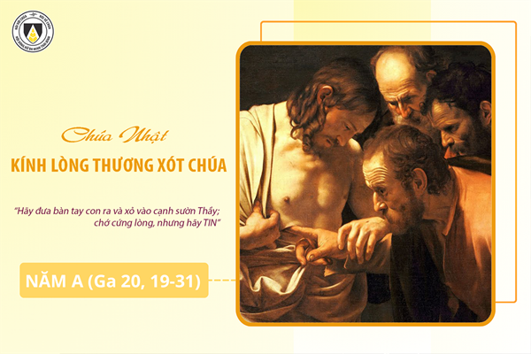Vào buổi chiều ngày thứ nhất trong tuần, những cửa nhà các môn đệ họp đều đóng kín, vì sợ người Do-thái, Chúa Giêsu hiện đến, đứng giữa các ông và nói rằng: “Bình an cho các con”. Khi nói điều đó, Người cho các ông xem tay và cạnh sườn Người. Bấy giờ các môn đệ vui mừng vì xem thấy Chúa. Chúa Giêsu lại phán bảo các ông rằng: “Bình an cho các con. Như Cha đã sai Thầy, Thầy cũng sai các con”. Nói thế rồi, Người thổi hơi và phán bảo các ông: “Các con hãy nhận lấy Thánh Thần, các con tha tội ai, thì tội người ấy được tha. Các con cầm tội ai, thì tội người ấy bị cầm lại”. Bấy giờ trong Mười hai Tông đồ, có ông Tôma gọi là Ðiđymô, không cùng ở với các ông khi Chúa Giêsu hiện đến. Các môn đệ khác đã nói với ông rằng: “Chúng tôi đã xem thấy Chúa”. Nhưng ông đã nói với các ông kia rằng: “Nếu tôi không nhìn thấy vết đinh ở tay Người, nếu tôi không thọc ngón tay vào lỗ đinh, nếu tôi không thọc bàn tay vào cạnh sườn Người, thì tôi không tin”.