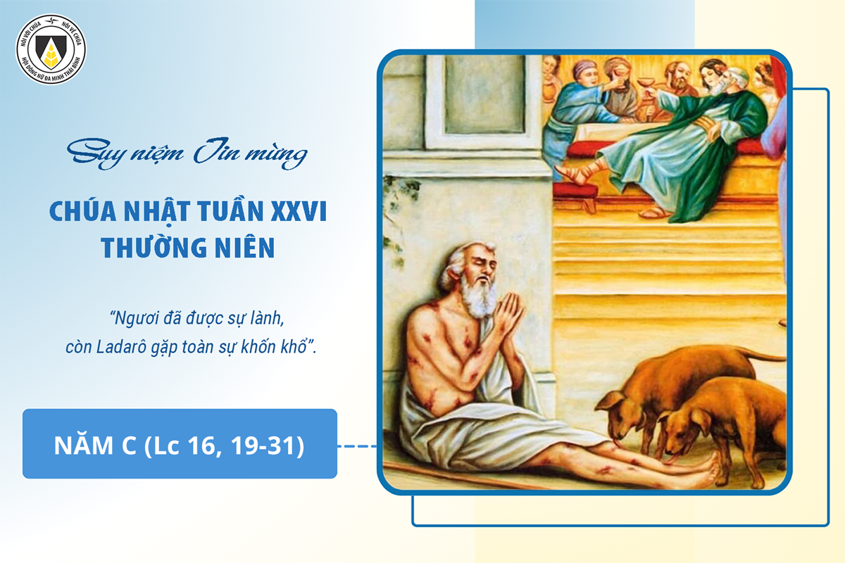 Đoạn Tin Mừng hôm nay thuật lại dụ ngôn người phú hộ giàu sang và anh Ladarô nghèo khó. Người phú hộ ngày ngày mặc gấm vóc, yến tiệc linh đình, trong khi ngay trước cửa nhà ông, Ladarô nghèo khổ, mình đầy ghẻ chốc, chỉ mong được những mẩu bánh rơi từ bàn tiệc nhưng chẳng ai đoái hoài. Khi cả hai qua đời, số phận đổi thay: Ladarô được an ủi trong lòng tổ phụ Abraham, còn người phú hộ phải chịu cực hình trong hỏa ngục.