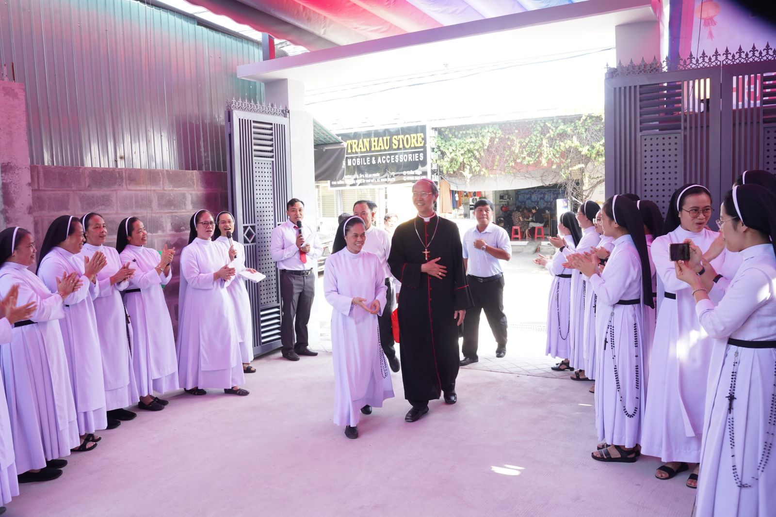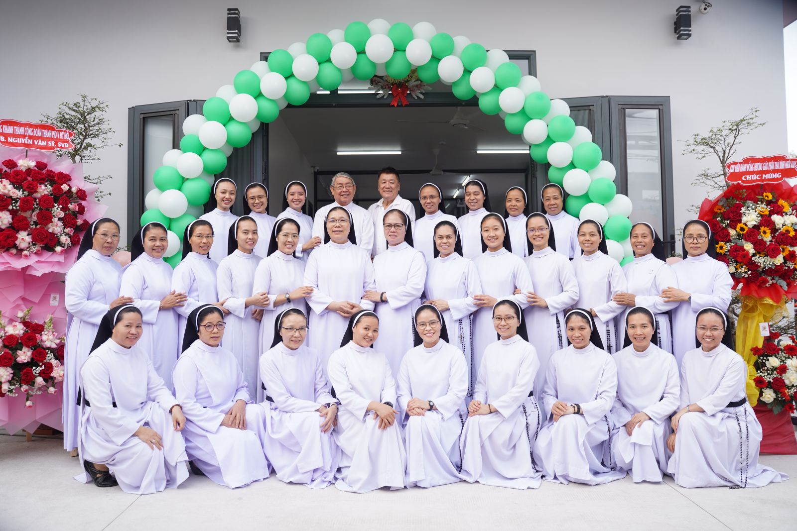 Dưới tiết trời râm mát càng làm khuôn viên ngôi nhà mới thêm phần tươi vui và trang trọng. Ngay từ sớm, trong tu phục truyền thống Dòng Đa Minh, quý chị em đã hiện diện nơi tiền sảnh để hân hoan đón chào Đức cha Gioan, quý Cha trong và ngoài Giáo phận, quý tu sĩ nam nữ, quý Thầy Chủng sinh, quý ông bà Cố, quý thân ân nhân, quý khách mời và đông đảo chị em trong Hội Dòng - từ các cộng đoàn Bắc – Nam quy tụ để chung chia niềm vui trọng đại của Dòng.