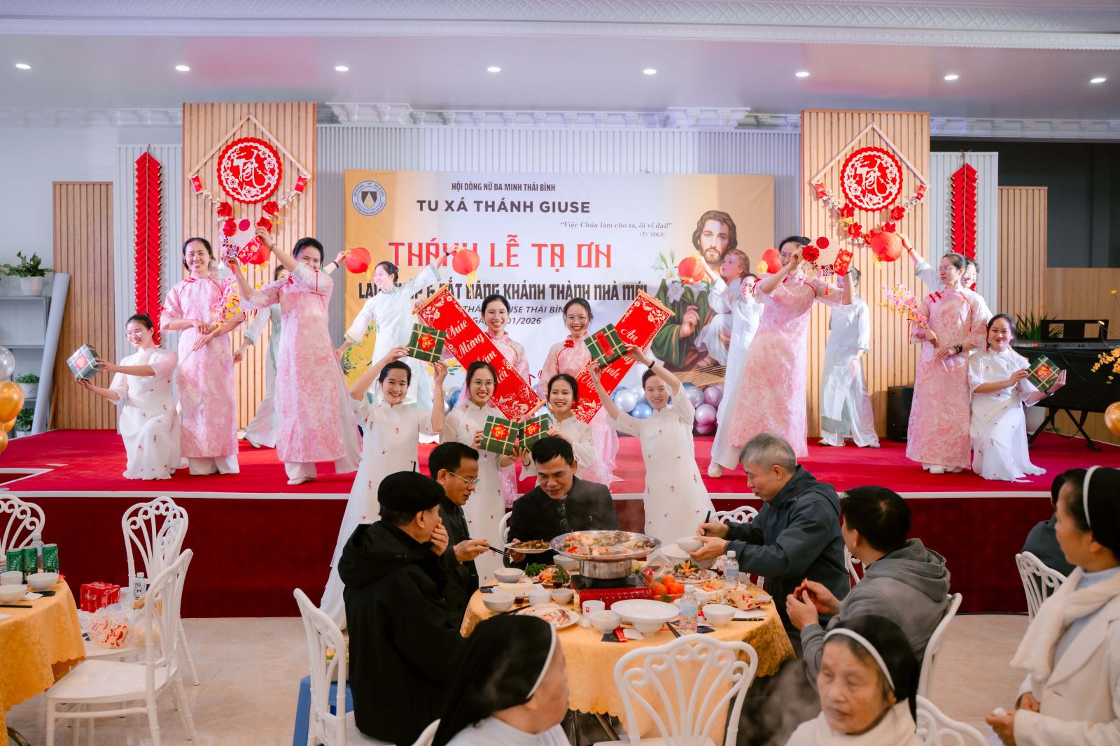 Trong tâm tình tri ân và tạ ơn Thiên Chúa, vào lúc 9g00 ngày 24.01.2026, Cộng đoàn Tu xá Thánh Giuse Thái Bình đã long trọng cử hành nghi thức cắt băng khánh thành và làm phép nhà mới. Đây không chỉ là niềm vui của ngày hoàn tất một công trình xây dựng, mà còn là dấu mốc thiêng liêng, ghi dấu hành trình đức tin, hy sinh và phó thác của cả cộng đoàn trong sự quan phòng yêu thương của Thiên Chúa.
