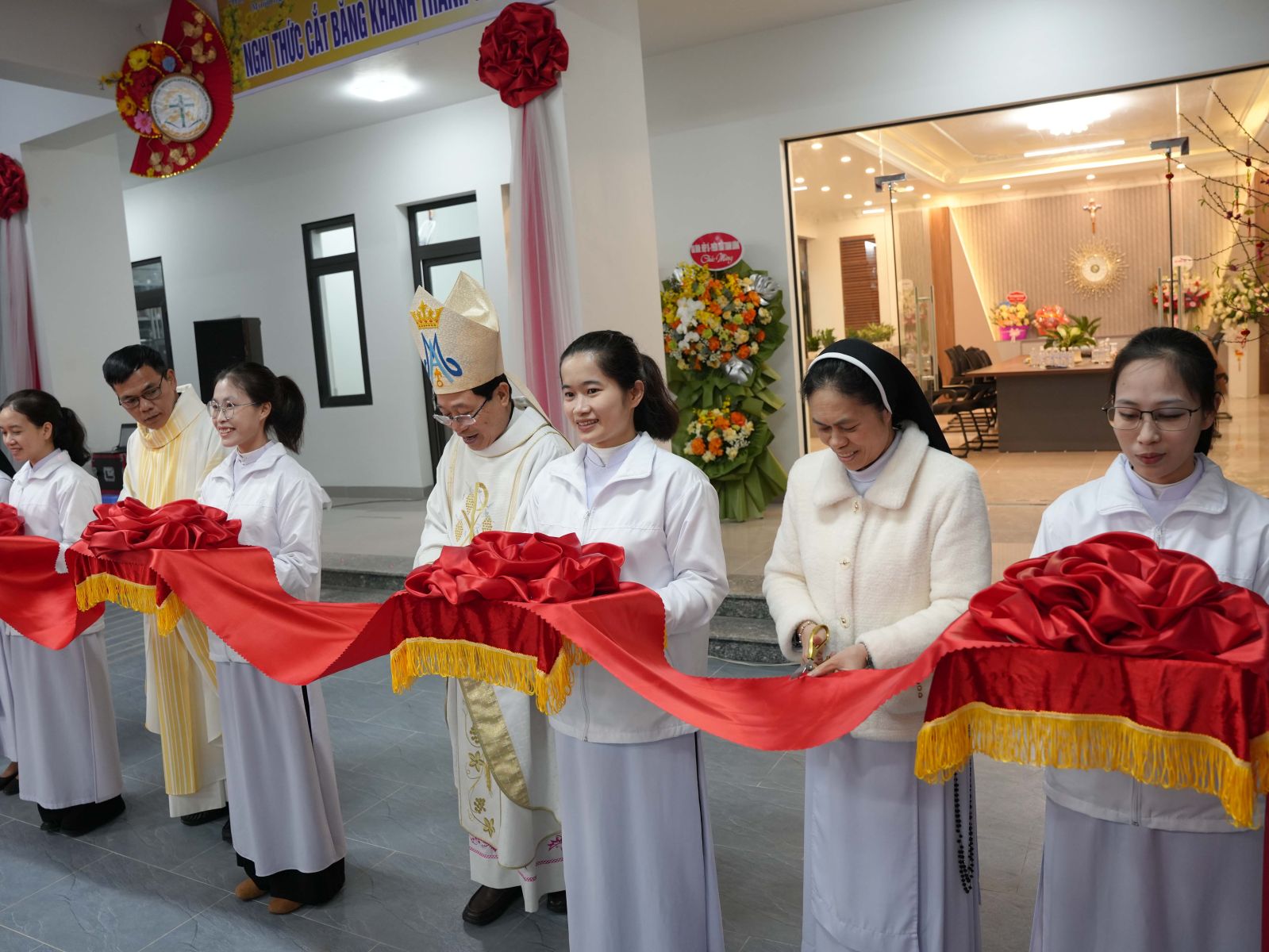 Đúng 9g00, nghi thức cắt băng khánh thành được cử hành trong bầu khí trang nghiêm và xúc động. Tiếp đó, Đức cha Đa Minh chủ sự nghi thức làm phép nhà mới, xin Thiên Chúa thánh hóa từng không gian sinh hoạt của Tu xá, để nơi đây thực sự trở thành mái ấm huynh đệ, nơi đào luyện đời sống thánh hiến và vun trồng những mầm non ơn gọi. Qua lời nguyện thánh hiến và dòng nước thánh, ngôi nhà Tu xá chính thức được dâng hiến cho Chúa, trở thành nơi Người ngự trị và đồng hành cùng đời sống cộng đoàn.