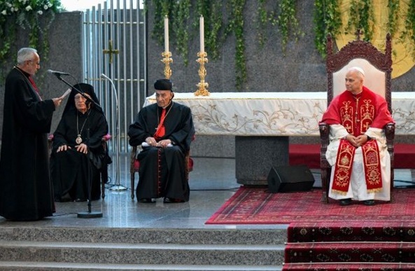 Chào mừng Đức Thánh Cha, Đức Thượng phụ Bedros nhấn mạnh rằng chuyến viếng thăm của Đức Thánh Cha là ngọn lửa sống động của hy vọng, soi sáng mọi miền đất nước. Niềm tin Kitô giáo tại Libăng có nguồn gốc lâu đời, được nuôi dưỡng bởi sự phong phú của các truyền thống Đông và Tây phương. Cộng đoàn Kitô hữu Libăng, cùng với anh chị em thuộc các tôn giáo khác, muốn làm chứng rằng sự chung sống và tình yêu mạnh hơn mọi chia rẽ.