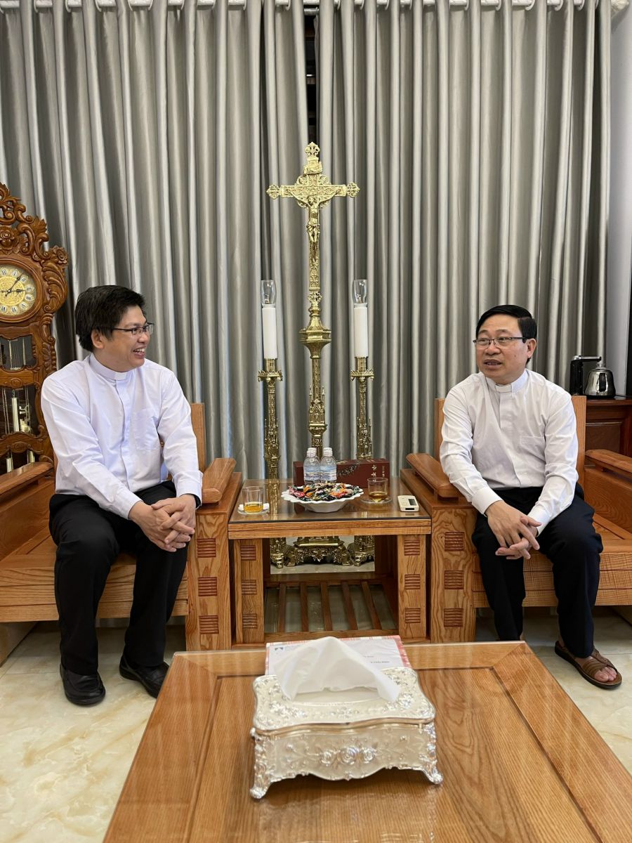 Trong buổi trao đổi thân mật và cởi mở, Đức tân Giám mục cám ơn Tỉnh dòng trong những năm qua đã giúp đỡ giáo phận trong sứ vụ đào tạo các chủng sinh tại Đại chủng viện, và coi sóc một số giáo xứ. Ngài chia sẻ rằng: Vì yêu mến đời sống của Cha thánh Đa Minh, mà ngài chọn làm bổn mạng, nên ngài mong muốn các chủng sinh có đời sống khó nghèo, yêu mến lời Chúa, học hỏi và nghiên cứu Thánh Khoa để phục vụ cho sứ vụ loan báo Tin Mừng của mình. Vì vậy, Đức Cha mong muốn Tỉnh dòng cắt đặt một cha giáo hiện diện tại Chủng viện để đồng hành với các chủng sinh.