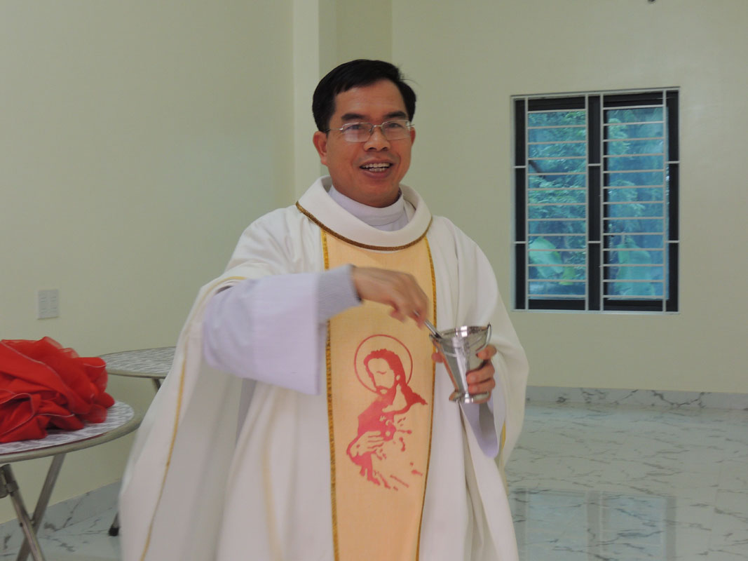 Đúng 9g00, tại sân tiền sảnh của Cộng đoàn, cha Bề trên Giuse Lý Văn Thưởng, OP cử hành nghi thức làm phép ngôi nhà mới trước sự hiện diện của quý Cha, quý thầy, quý nam nữ tu sĩ, quý ông bà cố và cộng đoàn. Sự hiện diện và việc chủ sự nghi thức làm phép nhà của cha Bề trên Tu viện Thánh Vinh Sơn Cát Đàm nói lên tình hiệp thông của những người con của Cha Thánh Đa Minh.