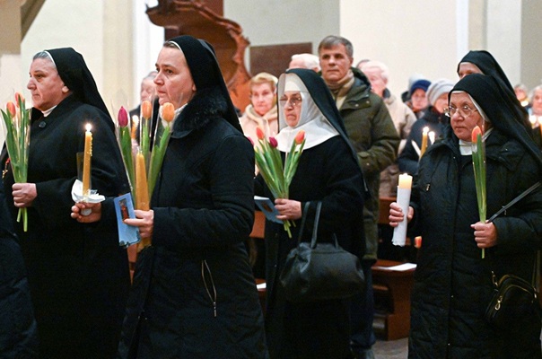 Các Nữ tu lặp lại Lời Khấn dòng tại nhà thờ Chính tòa Vilnius, Lithuania, ngày 2/2/2024. (© Aistė Karpytė)