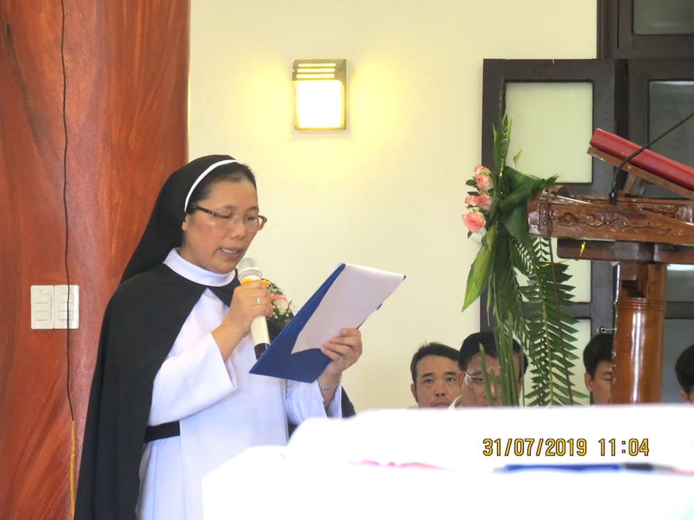 Sau Thánh Lễ, Chị Maria Ngô Thị Hạnh, Phụ tá Bề trên Tổng quyền đã thay lời cho toàn thể chị em trong Dòng, dâng lời tạ ơn Chúa, tri ân quý Đấng bậc, quý Cố, quý thân nhân, ân nhân và quý khách. Cảm ơn quý Ngài vì sự hiện diện quý báu trong Thánh Lễ Tạ ơn hôm nay cũng như sự nâng đỡ tinh thần vật chất cho việc ươm trồng ơn gọi cho Giáo hội trong Hội Dòng. Ước mong, các Khấn sinh luôn bền chí kiên tâm để trung thành giữ vững điều quý chị đã tuyên hứa.