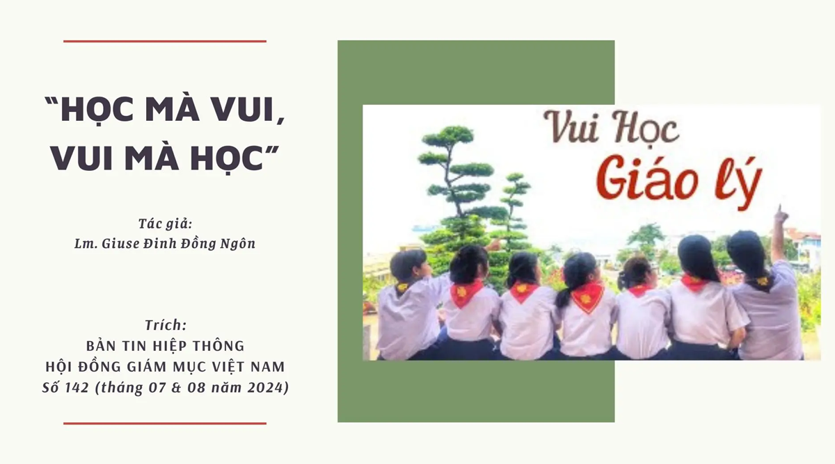Thực tế cho thấy, nơi các lớp học giáo lý, nơi thánh đường của phần đông các giáo họ giáo xứ, sự hiện diện của các em đã giảm đi rất nhiều. Phải chăng nơi đó không còn sự hấp dẫn và lôi kéo các em? Hay do các em bây giờ phải học quá nhiều không còn thời gian đi lễ và học giáo lý trong ngày Chúa nhật? Hay do sự giáo dục còn nhiều hạn chế ngay trong gia đình để các em ít có sự tự giác và tự lập? Thiết nghĩ, trách nhiệm vẫn thuộc về chúng ta - tiên khởi là trách nhiệm của bậc phụ huynh, sau đó là những người có bổn phận giáo dục đức Tin cho các em thiếu nhi - mầm non tương lai của Giáo hội và xã hội. Chúng ta phải nhìn nhận một vấn đề hệ quan năng động: cần phải đối diện với cục diện của xã hội để từ đó xây dựng một phương pháp thật sinh động và hấp dẫn để các em được yêu thương, được thu hút, có ấn tượng và “ở lại”. Ngang qua bài viết này, xin gửi tới bạn trẻ, các em thiếu nhi “đọc - gẫm - xem lại” chủ đề “HỌC MÀ VUI, VUI MÀ HỌC” có thể áp dụng cho các lớp giáo lý hiện nay.