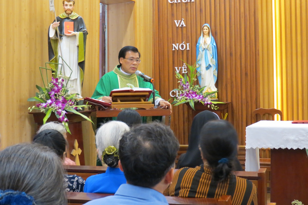 Tiếp nối tâm tình ấy, trong bài giảng Lời Chúa, cha Vinh sơn Phạm Văn Tuý, OP. đã cảnh tỉnh cộng đoàn về sự vô cảm trong xã hội hiện đại, khi khoảng cách giàu nghèo ngày càng lớn. Là những Kitô hữu, đặc biệt là tu sĩ Đa Minh, chúng ta cần mở lòng chia sẻ, đừng để trái tim trở nên chai đá như người phú hộ trong Tin Mừng Chúa Nhật XXVI thường niên: “Chúng đã có Môsê và các ngôn sứ thì cứ nghe lời các vị đó” (Lc 16,28b). Chúng ta cũng đã được chính Chúa Giêsu dạy dỗ mỗi ngày qua Lời Chúa và các biến cố trong cuộc sống. Mong rằng qua phụng vụ hôm nay, mỗi người sẽ được biến đổi và sống Lời Chúa cách sâu sắc hơn.