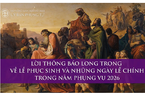 Nhằm giúp các tín hữu hiểu rõ hơn mối liên hệ giữa lễ Chúa Hiển linh và lễ Phục sinh và giữ một truyền thống của Giáo hội vào ngày lễ Chúa Hiển linh, Ủy ban Phụng tự xin giới thiệu bản văn Thông báo long trọng về lễ Phục sinh và những ngày lễ chính trong năm phụng vụ 2026 để các Giáo phận tùy nghi sử dụng: