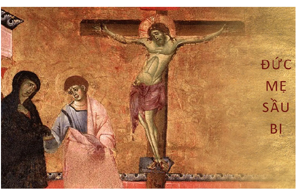 Đứng gần thập giá Đức Giêsu, có thân mẫu Người, chị của thân mẫu, bà Maria vợ ông Cơlôpát, cùng với bà Maria Mácđala. Khi thấy thân mẫu và môn đệ mình thương mến đứng bên cạnh, Đức Giêsu nói với thân mẫu rằng: “Thưa Bà, đây là con của Bà.” Rồi Người nói với môn đệ: “Đây là mẹ của anh.” Kể từ giờ đó, người môn đệ rước bà về nhà mình. (Ga 19,25-27).