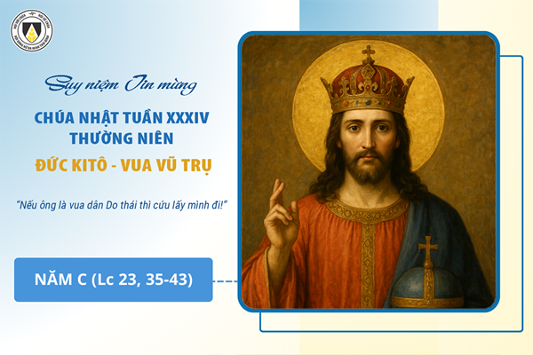 Trong tuần lễ cuối cùng của năm phụng vụ, Giáo Hội mời gọi chúng ta chiêm ngắm và tuyên xưng Chúa Giêsu là Vua Vũ Trụ – vị Vua của tình yêu, Đấng không ngồi trên ngai vàng trần thế, không có kẻ hầu người hạ, không đội vương miện bằng vàng, nhưng đội vòng gai và mang lấy thập giá. Vị Vua ấy đã đến trần gian để yêu thương, hiến thân và chấp nhận cái chết để cứu độ nhân loại. Dịp lễ này cũng nhắc chúng ta hướng lòng về quê hương đích thực mà Chúa hứa ban cho những ai sống theo Ngài. Khi Chúa Giêsu bị treo trên thập giá, Ngài ở giữa hai tên trộm; thánh Luca cho thấy những thái độ rất khác nhau của những người đứng xung quanh và của chính những kẻ cùng chịu đóng đinh. Đám đông và các thủ lãnh Do Thái không nhận ra vị Vua của tình yêu đang chịu chết vì tội lỗi của họ. Họ nhạo cười, thách thức và nói:“Nếu ông là vua dân Do thái, ông hãy tự cứu mình đi”. Bởi họ mong chờ một Đấng Kitô theo kiểu thế gian: oai phong, mạnh mẽ, đầy quyền lực trần thế.