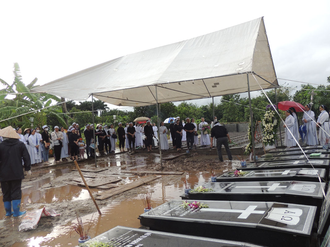 Trước khi tiễn đưa Dì Gioanna ra nơi an nghỉ chờ ngày Phục sinh với Chúa, Dì Bề trên Tổng quyền Maria Ngô Thị Hạnh thay lời cho chị em trong Hội Dòng và tang quyến của Dì Gioanna bày tỏ tâm tình tri ân Đức Cha Phêrô, quý cha, quý Bề trên, quý thầy Phó tế, quý thầy Chủng sinh, quý Tu sĩ nam nữ, và cộng đoàn vì thương mến Dì Gioanna và Hội dòng đã đến kính viếng, thăm hỏi, tham dự Thánh lễ an táng hôm nay.
