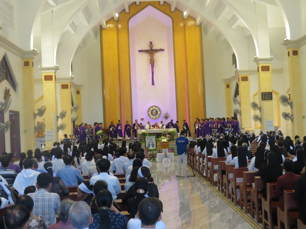 Như đã đưa tin, Thứ Tư, 28.9.2022, vào lúc 23g15’, Nữ tu Gioanna Phạm Thị Đức – Bề trên Tổng quyền Tiên khởi Dòng Nữ Đa Minh Thái Bình đã hoàn tất hiến lễ cuộc đời trong tình yêu thương của Thiên Chúa. Thánh lễ An táng Nữ tu Gioanna được cử hành trọng thể lúc 13g30’ thứ Bảy, ngày 01.10.2022 tại Nguyện đường Hội Dòng, do Đức Cha Phêrô Nguyễn Văn Đệ – Giám mục Giáo phận Thái Bình chủ tế.