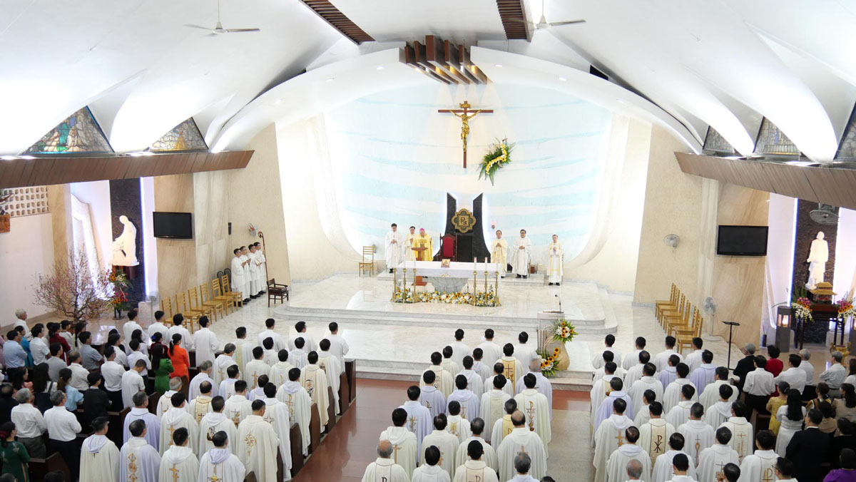 Thánh lễ Phong chức Phó tế diễn ra vào lúc 05g00 sáng hôm nay, 27/01/2024 tại Thánh đường Giáo xứ Mân Côi thuộc tu viện Rất Thánh Mân Côi, Gò Vấp. Đây cũng là cộng đoàn đào tạo lớn nhất trong Tỉnh dòng Đa Minh với Nhà Học và Trung tâm Học vấn, nơi quý thầy tiến chức đang thụ huấn.