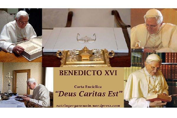 Trong một thế giới, nơi danh Thiên Chúa đôi khi bị nối kết với sự trả thù hay cả với nghĩa vụ hận thù và bạo lực, một sứ điệp như trên vừa rất hợp thời, vừa rất có ý nghĩa. Vì thế trong Thông điệp đầu tiên của tôi, tôi muốn nói về tình yêu Thiên Chúa ban tặng cho chúng ta và chúng ta phải tiếp tục trao ban cho kẻ khác. Như thế đã vạch ra hai phần gắn bó chặt chẽ với nhau của Thông điệp này. Phần đầu mang đặc tính lý thuyết nhiều hơn, vì tôi cố ý - vào lúc khởi đầu triều đại Giáo hoàng của tôi - giải thích một số điểm căn bản về tình yêu Thiên Chúa trao ban cho con người cách mầu nhiệm và hoàn toàn nhưng không, và đồng thời cho thấy sự liên kết nội tại giữa tình yêu này của Thiên Chúa với thực tại của tình yêu con người. Phần hai mang tính cụ thể hơn vì tình bày việc thực hành giới luật yêu người của Hội Thánh. Đề tài quá rộng lớn; một sự trình bày tường tận sẽ vượt quá mục đích của Thông điệp này. Tôi chỉ muốn nhấn mạnh vài yếu tố căn bản để khơi dậy trong thế giới một năng động mới cho việc con người đáp trả lại tình yêu của Thiên Chúa.