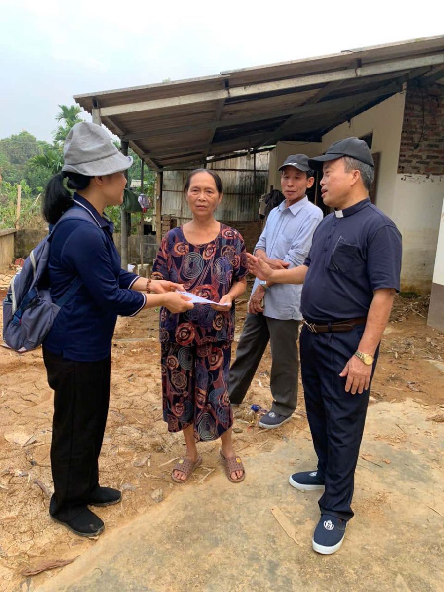 Được sự giới thiệu từ cha Giám đốc Caritas Giáo phận Hưng Hóa, đoàn đã khởi hành từ 5g30, ngày 26.9 để đến nhà thờ Giáo xứ thành phố Yên Bái, nơi gặp gỡ và được cha xứ Giuse Nguyễn Đình Tuyến hướng dẫn đến các điểm cứu trợ.